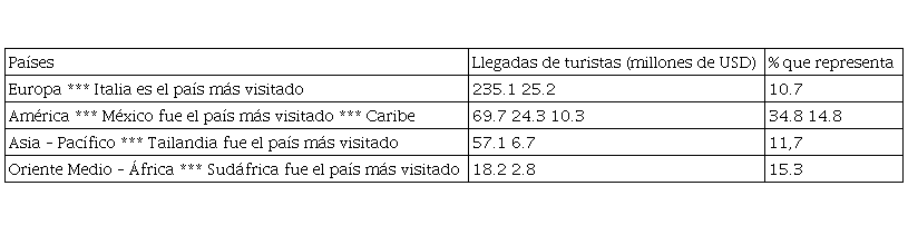 El turismo crece continuamente y es beneficioso para todos los países del mundo que explotan sus potencialidades de recursos y servicios, así se muestra en la Tabla 2; no obstante, las distancias geográficas siguen siendo las mismas, pero el creciente uso de las tecnologías ha permitido disminuir estas barreras que siempre parecieron imposibles de superar.