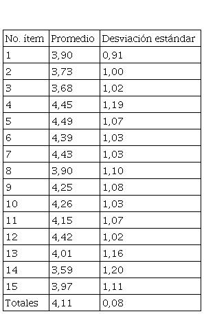 , lo cual indica que los hallazgos obtenidos aplicando el cuestionario son confiables. Los ítems incluidos en el cuestionario se muestran en el Cuadro 1, siendo en la escala utilizada, 1 el valor más bajo y 5 el valor más alto.