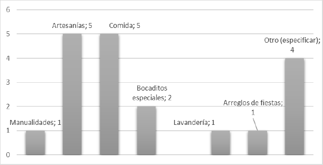 El Gráfico V, presenta las respuestas acerca de las interrogantes sobre las áreas donde posee algún tipo de habilidad personal. Según la encuesta aplicada a la muestra de estudio, las actividades como la artesanía y la preparación de comidas son las áreas donde las personas con discapacidad tienen habilidades personales. Por ello, surge la necesidad de poder crear mecanismos que permitan la capacitación de las personas en otras áreas, con el fin que puedan aprender algún oficio que les permita garantizar su bienestar económico y satisfacer sus necesidades más importantes.