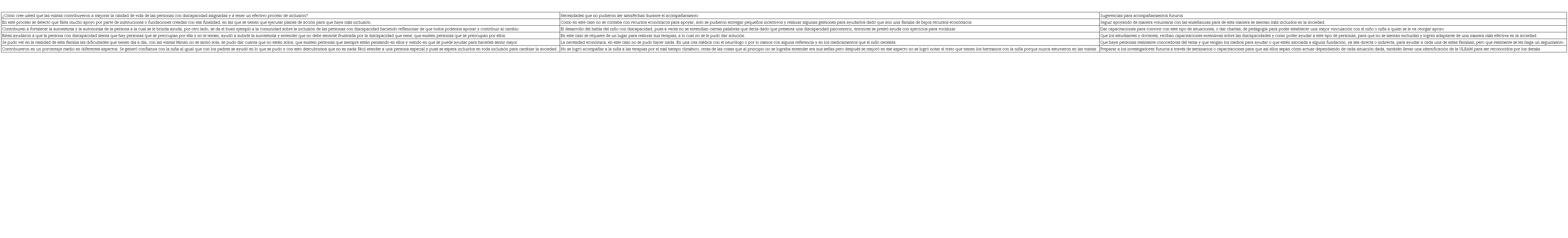 En definitiva, la pandemia por COVID-19 trajo muchos inconvenientes para activar las economías y las personas con discapacidad analizadas no escaparon de esa realidad. Esto demuestra que la inclusión sufrió los efectos de esta terrible situación, por lo que las personas que pertenecen a la Fundación se vieron afectados en su desarrollo personal y profesional.