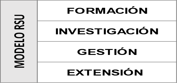 La Responsabilidad Social aplicada como una estrategia universitaria, es considerada de alta importancia en post de una formación y desarrollo profesional, académico y cívico-ciudadano de integrantes de la comunidad universitaria; favorablemente, varias herramientas usadas por la responsabilidad social se pueden adaptar a la naturaleza y entorno de las entidades universitarias (Rincón, Caridad y Salazar, 2017). Por ello, la responsabilidad de las universidades está orientada a largo plazo para resolver las necesidades y aspiraciones sociales (Organización de las Naciones Unidas para la Educación, la Ciencia y la Cultura [UNESCO], 1998). Bajo este contexto se aplicó el modelo de la Unión de Responsabilidad Social Universitaria Latinoamericana (URSULA) (ver Figura I), que contempla cuatro dimensiones: Formación, investigación, gestión, y extensión (Vallaeys, 2020).
