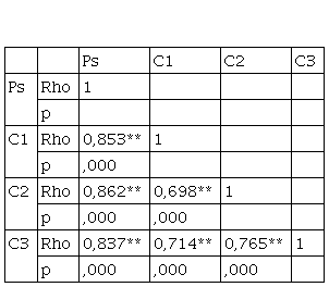 La relación directa entre todos los componentes del posicionamiento se muestra en la Tabla 1, los que presentan un p < 0,01. En lo que respecta al Componente 1: Identidad, muestra un coeficiente de correlación Rho de ,853 con el posicionamiento, ello implica que, a mayor nivel de identidad mayor será el posicionamiento; asimismo, en el Componente 2: Comunicación, se tiene que el coeficiente de correlación Rho es de ,862 con el posicionamiento, ello implica que, al existir un mejor grado de comunicación mayor será el posicionamiento.