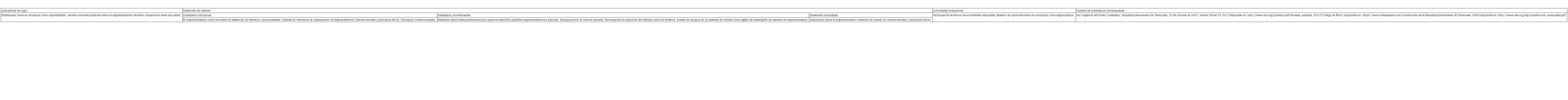A continuación, se presentan los talleres diseñados. El primero y segundo, corresponden al área socio-comunitaria cuya temática está asociada con la ética y moral del emprendedor (ver Cuadro 3). El tercero, abarca el área gerencial cuya temática involucra procesos de planificación estratégica, diseño de un plan de negocios y su metodología (ver Cuadro 4). El cuarto taller, se relaciona con el área económica incluyendo temática asociada con gestiones administrativas y de índole contable (ver Cuadro 5). Finalmente, se presenta el quinto taller correspondiente al área Legal, cuya temática está estrechamente vinculada con la constitución de una empresa incluyendo procesos de pago de aranceles tributarios y fiscales (ver Cuadro 6).