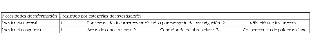 Para analizar los artículos rigurosamente, se establece un protocolo de estudio con las siguientes fases con sus métodos: Fase 1: Establecer las necesidades de información asociadas a cada categoría de investigación. Método: Se plantearon cinco preguntas de investigación distribuidas en dos necesidades de información (ver Cuadro 1).