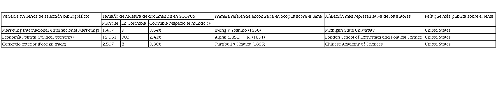 Palabras clave: Marketing internacional, economía política, comercio exterior, benchmarking bibliométrico, modelo.