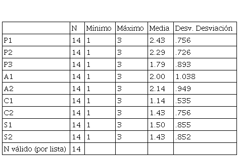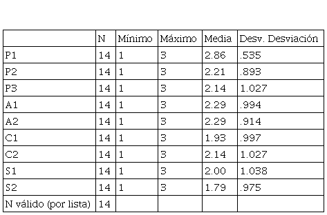 La Tabla 3, por otra parte, muestra los estadísticos descriptivos de las respuestas dadas por los niños pertenecientes a la institución no oficial, en la que se destaca, igual que en el caso del colegio oficial, una media mayor en las preguntas relacionadas con el presupuesto y en menor medida en las preguntas relacionadas con los créditos y con el sistema financiero.
