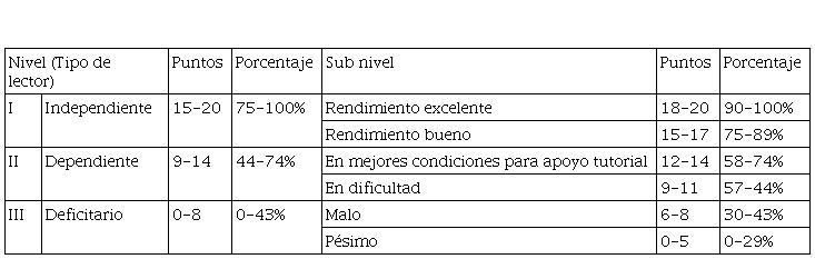 Los resultados vistos permiten ordenar las lecturas en dos rangos de dificultades: En el caso de la Universidad Católica de Santa María (UCSM):