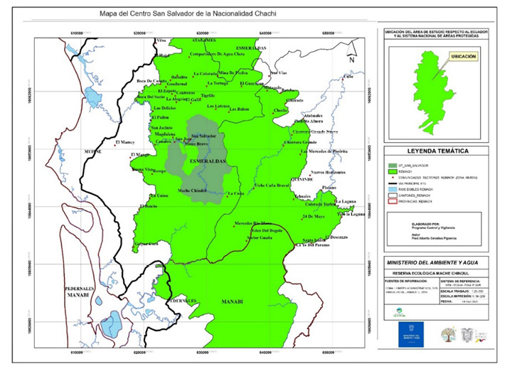 Es importante destacar que lo presentado en esta investigación desde el área ambiental ha sido validada por el Ministerio de Ambiente y Agua, a través de la Administración de la Reserva Ecológica Mache Chindúl (REMACH), debido a que toda actividad que se desarrolle en áreas protegidas debe ser autorizada por este ente competente, el cual también fungió como apoyo cooperativo con el suministro de información ambiental y cartográfica. A su vez, la comunidad Chachi también confirma la aceptación del principio de consentimiento informado.
