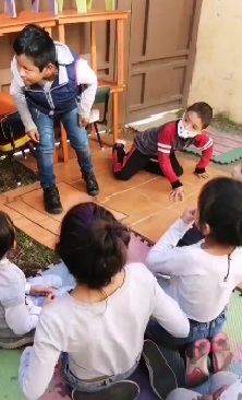 Como puede inferirse, se tuvo un acercamiento a los juegos de ficción con distintas situaciones; entre ellas, representar personajes (mamá, papá y hermanos) en otra situación cotidiana, por ejemplo, la de se ha hecho tarde para ir a la escuela y no hay transporte. Por la vía del juego se dramatizan estas situaciones para encontrar una posible solución al conflicto. Los juegos de dramatización preparan a las y los infantes en la resolución de problemáticas que viven cotidianamente; ponen en práctica las habilidades sociales, así como las capacidades de inteligencia emocional. Cada vez que se enfrentan a una disyuntiva de modo activo se traza un camino para mejorar su autoestima. El juego dramático permite distanciar2 una situación compleja, de manera que al abordándola escénicamente es posible tener varias propuestas de solución a través de la opinión de los otros.