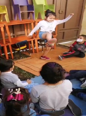 Desde la primera sesión se fomentó un ambiente de seguridad para que el trabajo se desarrollara de manera espontánea. No obstante, la situación de confinamiento repercutió en una actitud tímida y poco participativa, así que la creación de un saludo ayudó al grupo tanto a encontrar el sentido de pertenencia como a gozar la experiencia del taller de teatro. Por su parte, los ejercicios de calentamiento fueron pensados para fortalecer el ambiente de seguridad; esto debido a que en las primeras sesiones las niñas y los niños experimentaban resistencia a la proximidad física con sus semejantes.