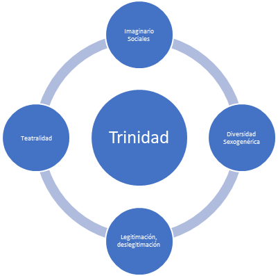 El presente trabajo trata sobre la construcción de imaginarios sociales desde la perspectiva de la diversidad sexogenérica, al considerar que a partir de ella se pueden gestar procesos de legitimación. Para esta propuesta se tomó como referencia el texto dramático Trinidad de Juan Carlos Embriz y Hugo Salcedo; la obra se analiza a partir de los referentes analíticos de la morfología y en paralelo con la construcción de los imaginarios sociales, estos se sitúan como ejes de pensamiento en los cuales se articulan comportamientos cuya matriz de conexiones se origina en las experiencias colectivas.