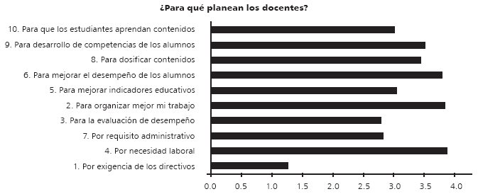 En cuanto al para qué planean los docentes, en la gráfica 4 se indica (con relleno de trama rombos) el valor atípico inferior identificado.