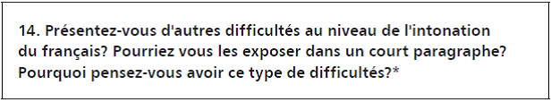 Par ailleurs, le questionnaire met en évidence qu'en général les étudiants prononcent de manière systématique le [ə] instable lorsqu'il est présent en milieu de mots (par exemple: maintenant ou j'achèterai) et également lorsqu'il s'agit d'articles ou de déterminants (par exemple: chez le coiffeur ou à côté de la gare). Comme nous avons pu le remarquer lors de l'analyse des documents de production orale réalisés par les étudiants, ce dernier aspect a bien sûr une répercussion négative sur le rythme de paroles, l'intonation des énoncés mais également sur la fluidité générale du discours.
