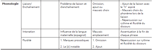 Suite à la triangulation des résultats, nous avons pu identifier les erreurs fossilisables qui sont présentées dans le tableau 1 ci-dessous et que nous détaillons dans les paragraphes suivants: