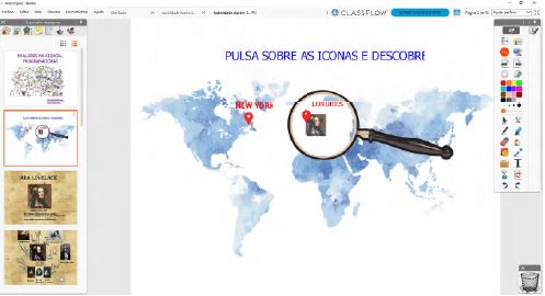 En la segunda sesión presencial, se elaboraron las actividades utilizando las herramientas y funciones anteriormente mencionadas. Como resultado de este proceso, cada grupo diseñó una secuencia de actividades interactivas bajo la temática “Mujeres científicas notables: hacer visible lo invisible” (Figuras 5 y 6).