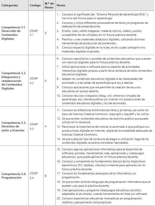 El instrumento utilizado para la recogida de datos, para identificar las necesidades de formación en competencia digital docente en el área de creación de contenidos, fue un formulario en papel. Se elaboró a partir del publicado por Castiñeira et al. (en prensa), que fue diseñado a partir de los marcos DigComp 2.0 (2016), DigCompEdu (2017) y del Marco Común de Competencia Digital Docente (INTEF, 2017), así como del proyecto NETTS*S (ISTE, 2018) y el Marco UNESCO de Competencia TIC para docentes (Butcher, 2019).
