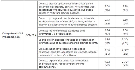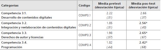 En la tabla 3 se muestran las puntuaciones medias en cada una de las subcompetencias. En todos los casos, estas aumentan significativamente tras la intervención. A pesar del pequeño tamaño de la muestra, las diferencias son evidentes en tres de los cuatro casos, lo cual señala el éxito obtenido.