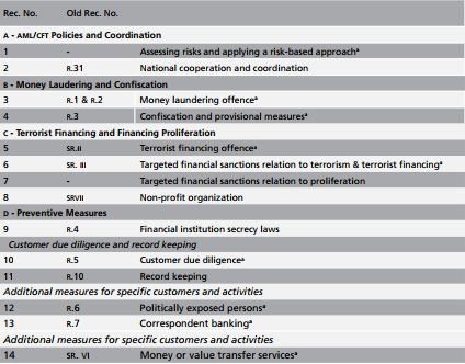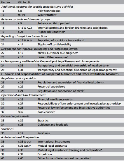 In detail, the 40 Recommendations to prevent money laundering describe: