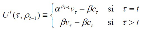 Denotamos como Ut ( τ , ρt−1 ) la utilidad percibida por un individuo en el periodo t de hacer la actividad en el periodo τ, donde t ≤ τ y ρt− 1 representa si se alejó o no la tentación en el periodo t ‒ 1.