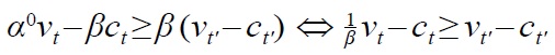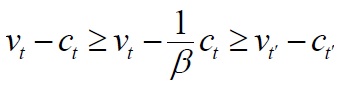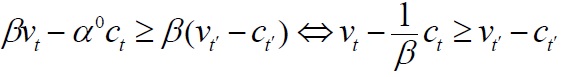Sea tʹ ≡ arg max1 ≤ τ ≤ T (vt ‒ ct ). Los agentes CT siempre lo harán en tʹ, ya que en ese periodo es cuando se maximiza el valor de (vt ‒ ct ).