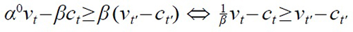 Los CT’s lo hacen en el periodo t si y sólo si vt ‒ ct ≥ vtʹ ‒ ctʹ . Por lo tanto, si un agente ingenuo lo hace en el periodo t, también lo hará un CT.