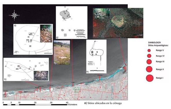 Así mismo, estos lugares se relacionan estrechamente con los sitios mayores ubicados en islotes dentro de la ciénaga, y estos últimos se comunican con el interior a través de andadores de piedra que permiten cruzar con cierta facilidad los terrenos pantanosos.