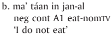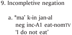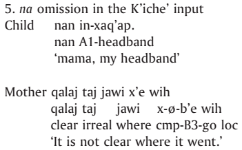 The example in (5) shows the mother’s omission of the first part of the circumfix in a context of clausal negation.