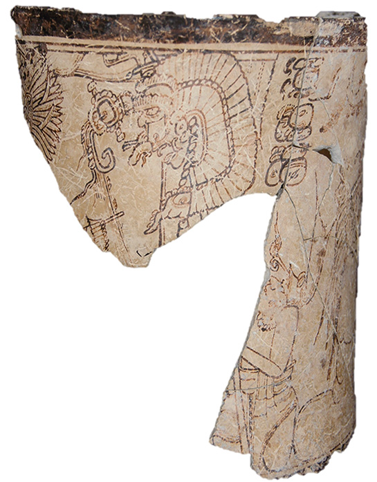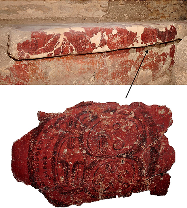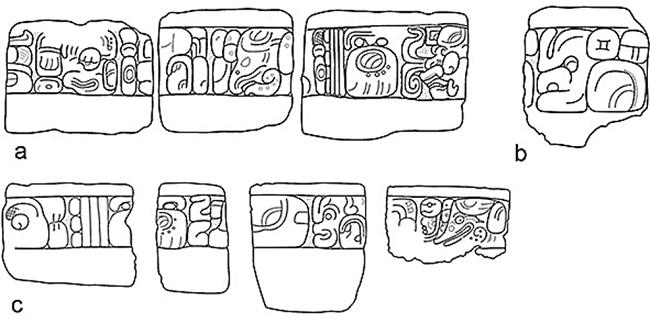 Otro señor de Chatahn Winik aparece mencionado en la Subestructura Sub XX b-1 (Figura 9), en una banqueta pintada de color rojo y con una inscripción jeroglífica en negro. Aunque esta inscripción carece de fecha, tanto el contexto arqueológico como el estilo caligráfico la fechan para el período Clásico Temprano, por lo que se puede establecer una relación temporal entre ambos personajes.