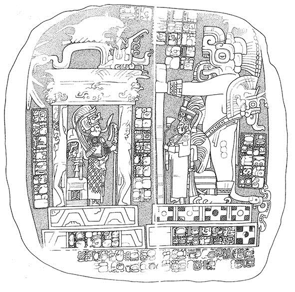 En Yaxchilán, los gobernantes se representaron con dos GGEE (Berlin, 1958: 115-116; Mathews, 1988: 57-59). Ute Schüren (1992)) sugirió que el GE secundario (Y2) fue introducido por una mujer, Ixpakal, a partir de su alianza matrimonial con Yaxuun Bahlam III.28 Si esta hipótesis es correcta, contamos con un caso de transmisión vía materna. Sin embargo, tomando en cuenta que ambos GGEE hacen referencia a lugares mitológicos (Helmke, 2012), no podemos descartar la posibilidad de que la introducción del GE Y2 fuese una estrategia discursiva relacionada con la necesidad de Kokaaj Bahlam I de legitimar su posición política, similar al uso del GE de Matwiil en Palenque. Otro caso en que se ha propuesto la introducción de un GE por parte de una mujer es el del apelativo k’uhul baake’l ajaw en Tortuguero, pero las relaciones de parentesco de las personas involucradas no son suficientemente claras para confirmar este escenario (Gronemeyer, 2004: 146-147, 2012: 20-22; Gronemeyer y MacLeod, 2010: 53-54, nota de pie 56).