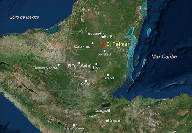 El Palmar se encuentra al sureste del estado de Campeche, México, a 50 km al oriente de Calakmul (Figura 1). Desde el año 2007 a la actualidad, se ha desarrollado allí el Proyecto Arqueológico El Palmar: urbanización del espacio social en las tierras bajas mayas, codirigido por Kenichiro Tsukamoto y Javier López Camacho.