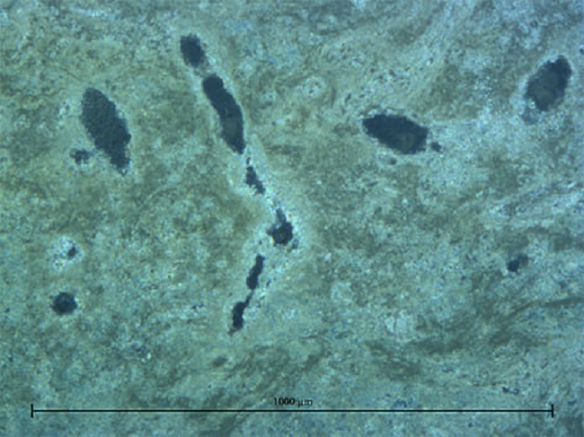Comparando los materiales arqueológicos con los de referencia geológica, observamos mayor concordancia petrográfica entre los materiales neógenos de la formación Carrillo Puerto obtenidos en los afloramientos inmediatos de Sihó (ID: 131, 149 y 167), atendiendo sobre todo al contenido en fósiles o peloides (M-2 y M4) y a las características menos lavadas en sus partes de mudstone y/o boundstone (M-2 y M8). Por ejemplo, estas similitudes quedan muy patentes entre los contenidos de gasterópodos fósiles de la muestra arqueológica del metate M-2, M-4 y M-15, con la muestra de referencia geológica ID: 167. Otro indicio menos evidente es la presencia compartida de algas coralinas rojizas o Rhodophyta(Antonio y Rosas, 2012), como se da entre la muestra de referencia ID: 41 o 149 y la muestra arqueológica M-8, aunque también se encuentran muy representadas en la formación Chichén Itzá (López, 1977). Alternativamente, en la misma muestra M-8 se observa alguna inclusión cuarcítica, localizada también en las rocas de las tres formaciones geológicas (Figura 4). Dicha situación refuerza la necesidad de una cuantificación elemental del silicio y/o calcio, más allá de una simple identificación y caracterización mineralógica cualitativa.