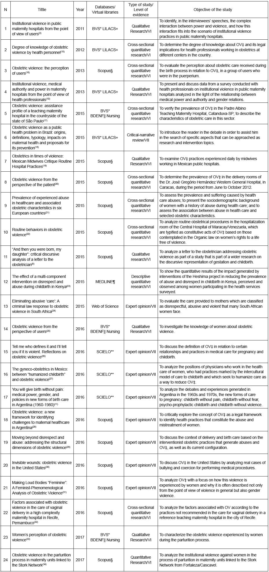 Descritores: Violência Contra a Mulher, Mulheres, Obstetrícia, Parto Obstétrico, Exposição à Violência, Revisão.