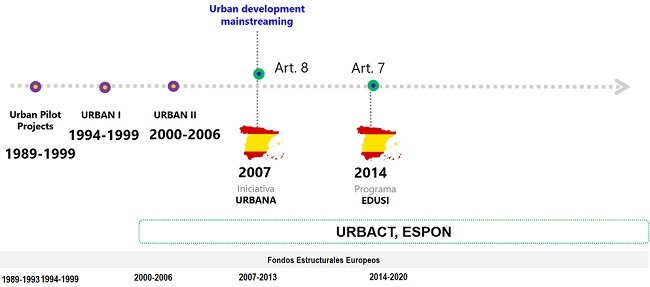 El DUSI ha tenido una gran influencia en España, donde se ha verificado un efecto de europeización urbana down-load, entendido como un proceso de acomodación (domesticación) de las reglas formales e informales promovidas UE en el ámbito del desarrollo urbano en un Estado Miembro (González et al., 2017). Se encuentran evidencias de este proceso, por ejemplo, en el desarrollo de la capacidad institucional de muchas administraciones locales, cuyo personal reconoce que los proyectos de desarrollo urbano financiados con Fondos Europeos exigen formas de trabajo diferenciadas de la práctica administrativa ordinaria (Busetti et al., 2018). España, se caracteriza, además, por ser el único Estado Miembro que, durante cuatro periodos de programación consecutivos, ha impulsado de manera continuada programas de desarrollo urbano integrado (URBANA 2007-2013 y EDUSI 2014-2020) en línea con los principios promovidos por la UE (De Gregorio, 2018). Todos estos procesos han preparado el terreno para el lanzamiento de la Agenda Urbana Española (Acuerdo de Asociación de España, 2014: 222).