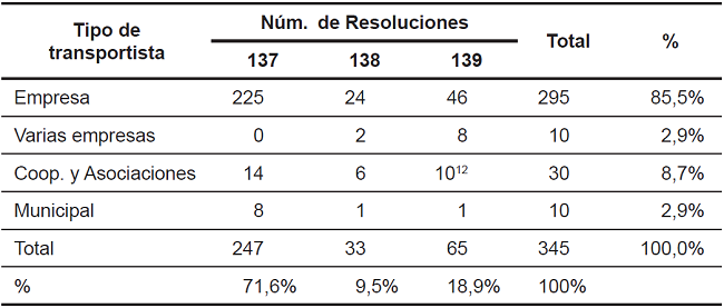 En la base de datos del OPDS construida con información suministrada por los planes de gestión presentados por los grandes generadores, se pueden identificar 66 transportistas de residuos reciclables, de los cuales más del 75% son empresas privadas mientras que el resto son asociaciones y cooperativas. Si se analiza por tipo de Resolución se observa que las cooperativas y asociaciones tienen mayor presencia como transportistas de los residuos reciclables en los countries y barrios cerrados, lo que corrobora la dificultad mencionada para poder brindar el servicio de transporte a las industrias.