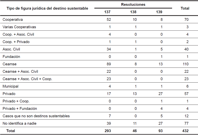 Sin embargo, dicho propósito no logra plasmarse en los hechos, como se irá viendo a lo largo de este trabajo. En lo que sigue se repasan y analizan algunos dificultades que han tenido las cooperativas ya sea para lograr su habilitación como destino sustentable, o bien para gozar de los beneficios que estipulaban las Resoluciones.
