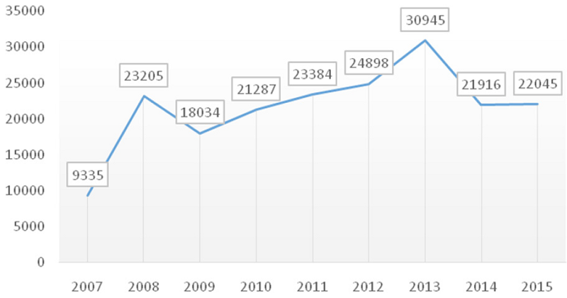 De la misma manera, la vivienda de interés social tiene un promedio de producción anual de 14.404 unidades, presentándose un incremento del 133%, del 2007 al 2015 En 2008 incrementó un 44% con relación al año 2007, en el 2009 (22%), 2010 (47%), 2011 (51%), 2012 (–37%), 2013 (17%), 2014 (–26%), y 2015 (26%)