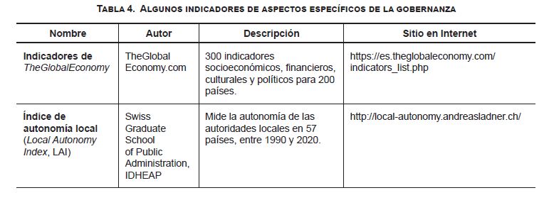 A continuación, se señalan algunas sugerencias de apoyo a la evaluación crítica anterior al empleo de los distintos indicadores de gobernanza.