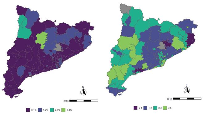 Por otra parte, la ley 12/2007 establece una cobertura del 4 % para el SAD (sin distinguir entre modalidades) sobre la población mayor de 65 años. Los datos para 2012-2019 muestran que la cobertura media es de 3,48 %, lo cual se acerca a este objetivo. No obstante, solo el 32 % de las ABSS supera este umbral, representando el 47 % de la población mayor de 65 años. Superan el 4 % de cobertura territorios como el Alto Pirineo, Catalunya Central, Barcelona y Baix Empordà, mientras que tienen una cobertura muy baja ámbitos territoriales de Lleida, Calafell, Baix Penedés y Blanes o la Vall d’Aran. Esta diversidad, también atribuida a la autonomía local, es corroborada por las entrevistas realizadas a profesionales de la administración local y autonómica (E6 y E4):