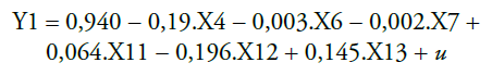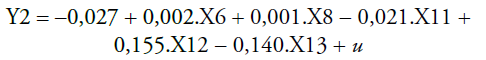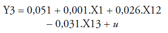 Quanto mais significativo for o peso de uma variável isolada, ou de um conjunto de variáveis explicativas, tanto mais se poderá afirmar que alguns fatores afetam o comportamento de uma variável de resposta especificamente procurada. De acordo com os resultados apresentados na Tabela 2, a equação que representa o modelo apresenta-se por: