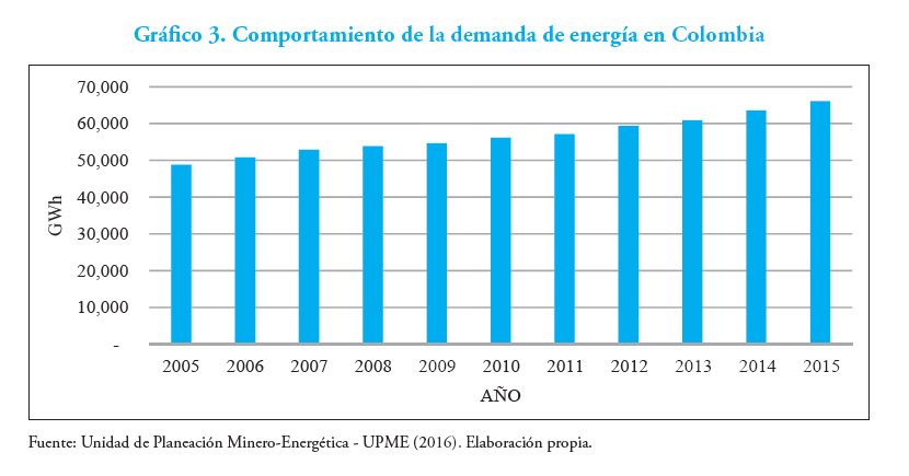 Unidad de Planeación Minero Energética (UPME) (2016). Proyección de la demanda de energía eléctrica y potencia máxima en Colombia 2016-2018. Bogotá: UPME. Recuperado el 21 de noviembre de 2017 de http://www.siel.gov.co/siel/documentos/documentacion/Demanda/UPME_Proyeccion_Demanda_Energia_Electrica_Junio_2016.pdf