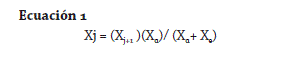 Xj+1 = valor de dato con englobe (mes siguiente alfaltante).