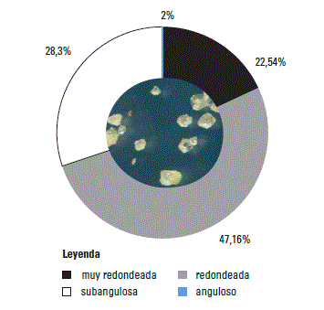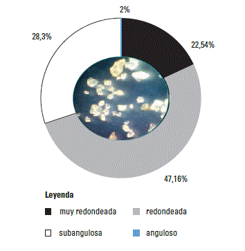 En general, predominan —aproximadamente en las mismas proporciones— los cuarzos con bordes redondeados frente a los sub–angulares.