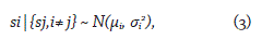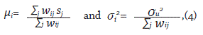 Where μiand αi2 are the weighted average and variance incorporating the immediate neighbors. Also,