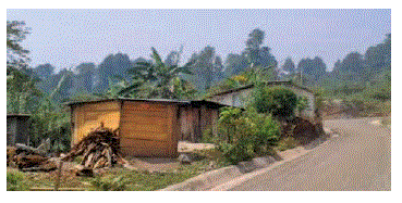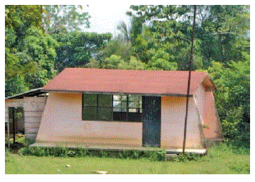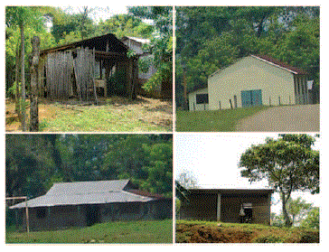 En las localidades originales las viviendas estaban asentadas en una superficie de 900 m2, su construcción oscilaba entre 40 y 60 m2. Eran de muros de madera y/o block, techos de lámina y piso de tierra o concreto. En la figura 4 se muestra el tipo de vivienda que existía en esas comunidades, es importante mencionar el contacto que tenían los usuarios con la vegetación, como una forma para producir su alimento.