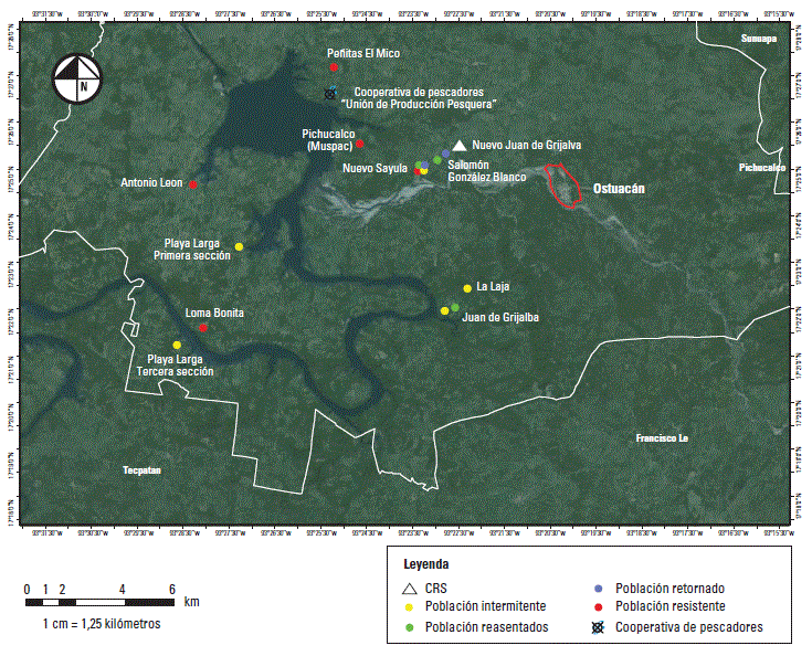 Otro elemento determinante para estas respuestas fue la construcción histórica del territorio. El municipio de Ostuacán ha vivido reasentamientos en su historia, el más reciente fue con la edificación de la Presa Peñitas en 1980 que ocasionó el traslado de las localidades de Sayula y Playa Larga Segunda Sección, que cambiaron su nombre a Nuevo Sayula y Juan de Grijalva. Este fenómeno contribuyó a que la adaptación a la CRS haya sido menos agresiva para esa población, que tenía un “conocimiento acumulado” de cómo actuar en un proceso de reacomodo.