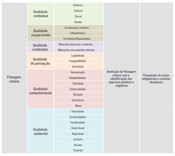 E ainda identificam, a partir de um referencial bibliográfico, de abrangência nacional e internacional, indicadores ou variáveis para a análise da paisagem urbana. Em suas dimensões simbólicas, físicas, visuais, cognitivas, sociais, econômicas, políticas, culturais e constitutivas, enfocando, especificamente, as necessidades, imagens, percepções, apropriações, sentimentos e relações estabelecidas entre as pessoas, entre elas e o meio em que habitam.