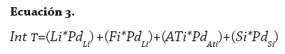 Los índices de los factores se obtienen del promedio de los índices de los subfactores asociados. La importancia de cada factor en la expresión de la intensidad del turismo está dada por un valor ponderado, obtenido a partir de la consulta directa con los actores, la revisión de estudios realizados sobre la región y el trabajo de campo. El valor de intensidad del turismo se estima mediante la ecuación 3.