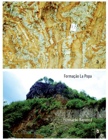 Também se sobrepondo à Formação Bayunca de forma discordante, encontra-se a Formação La Popa do Pleistoceno Superior. Ángel, Esquivel e Sarmiento (1985), para referirem-se ao membro inferior, utilizaram o termo unidade detrítica La Popa e, para o superior, calcários recifais La Popa. A Formação La Popa repousa em desconformidade sobre a Formação Arjona, no extremo sul e, principalmente, sobre a Formação Bayunca (figura 2b), de forma fragmentada no setor ocidental (Ingeominas 2003).