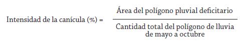 El déficit pluvial corresponde al área del polígono y se expresó en dos unidades (porcentaje y milímetros). La distribución mensual de la canícula se estableció a partir de un análisis de frecuencia. Para evaluar la intensidad del fenómeno, se delimitaron tres tamaños de clase: débil (0,1% a 33%), media (33,1% a 66,0%) y severa (66,1% a 99,0%). Mediante una regresión lineal se determinó la tendencia del comportamiento de la canícula a lo largo del periodo estudiado y con un análisis de frecuencia se estableció el número de meses caniculares (Wilkis 1995). Finalmente, se vincularon los veranos con ENSO y la frecuencia por intensidad de la canícula.