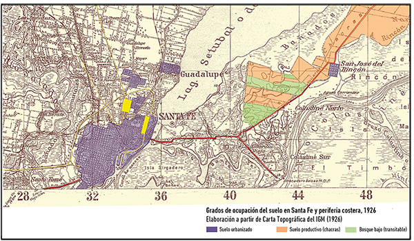 El área de “la costa”22, como se conoce en Santa Fe a la urbanización sobre la franja de tierra firme ubicada en la planicie aluvial del sistema fluvial Paraná, ha sido atravesada por dichos procesos de orden más general, que se articulan con las particularidades históricas del sitio en modalidades específicas.